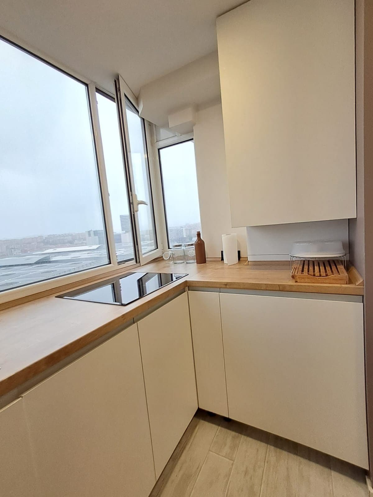Piso amueblado para entrar a vivir. Consta de 83 m2 distribuidos en zona de estar con cocina totalmente equipada con un gran ventanal con vistas al BEC, 4 habitaciones (habitación principal con baño), 2 baños completos. Ventanas de PVC de climalit. Suelos de madera.