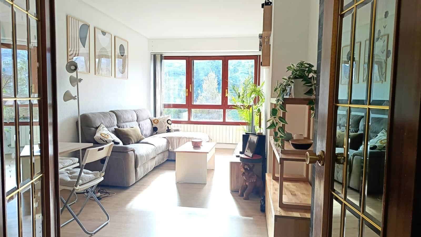 SOLEADA VIVIENDA de 76 metros cuadrados distribuidos en hall de entrada, luminoso salón con magníficas vistas al Pagasarri, cocina nueva totalmente equipada e independiente, 2 habitaciones, un baño completo y un aseo.