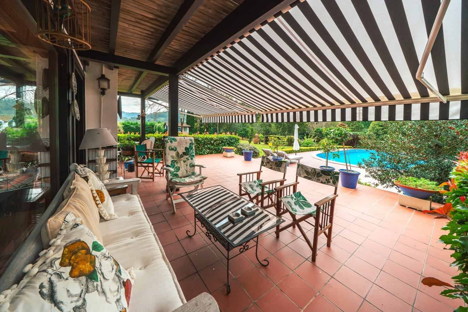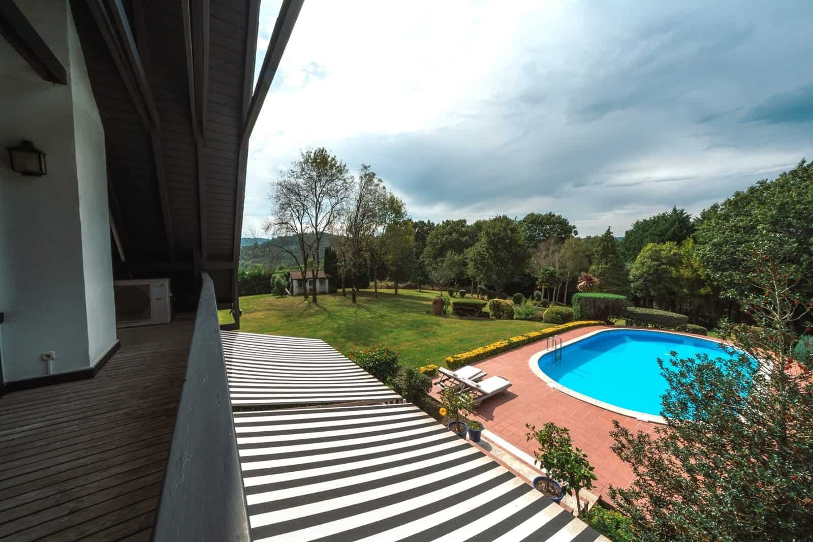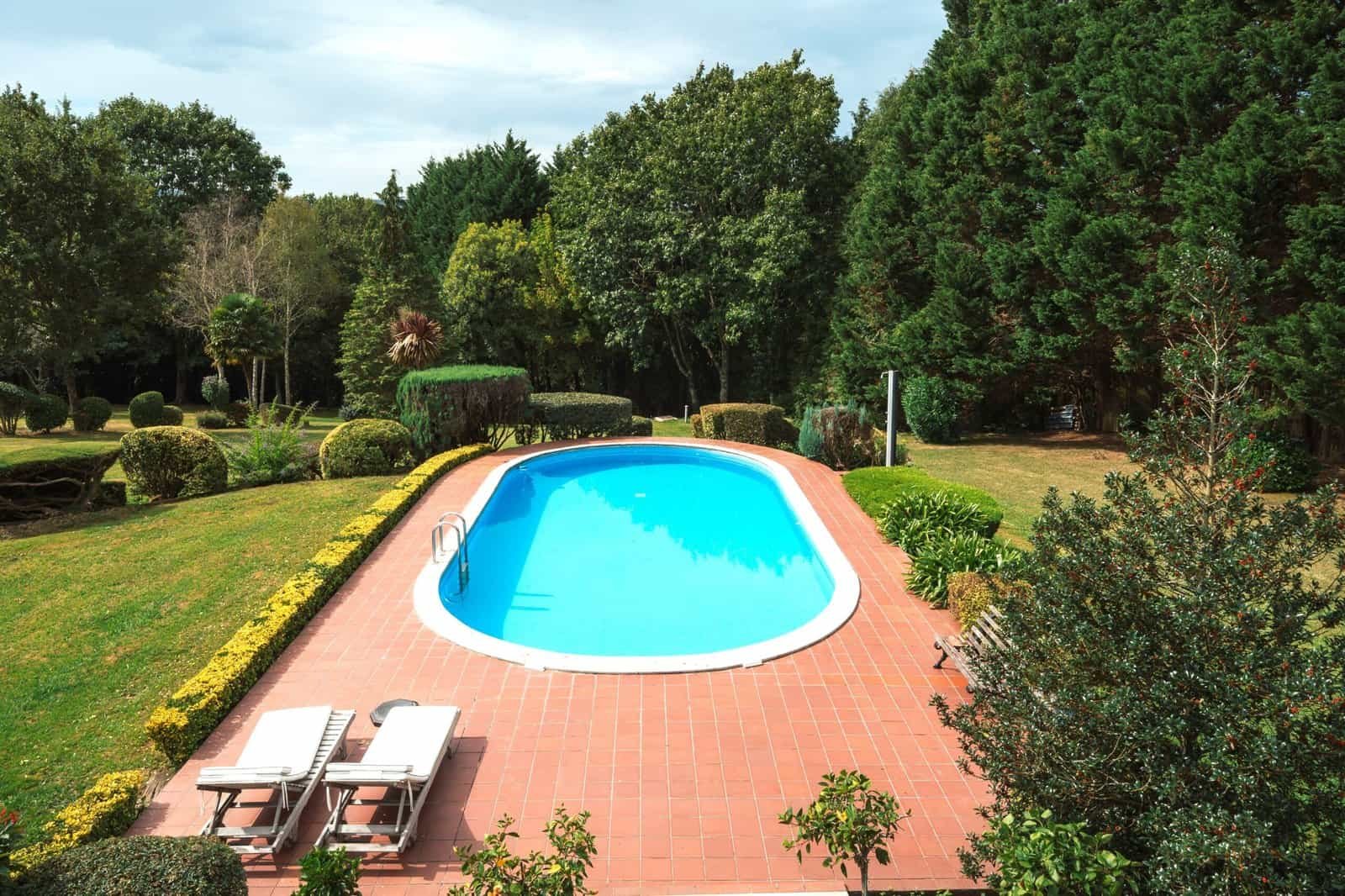 En el jardín, saliendo del porche principal, nos encontramos con una preciosa y amplia PISCINA. La vegetación alrededor de la misma hacen del espacio exterior algo único y sumamente especial.