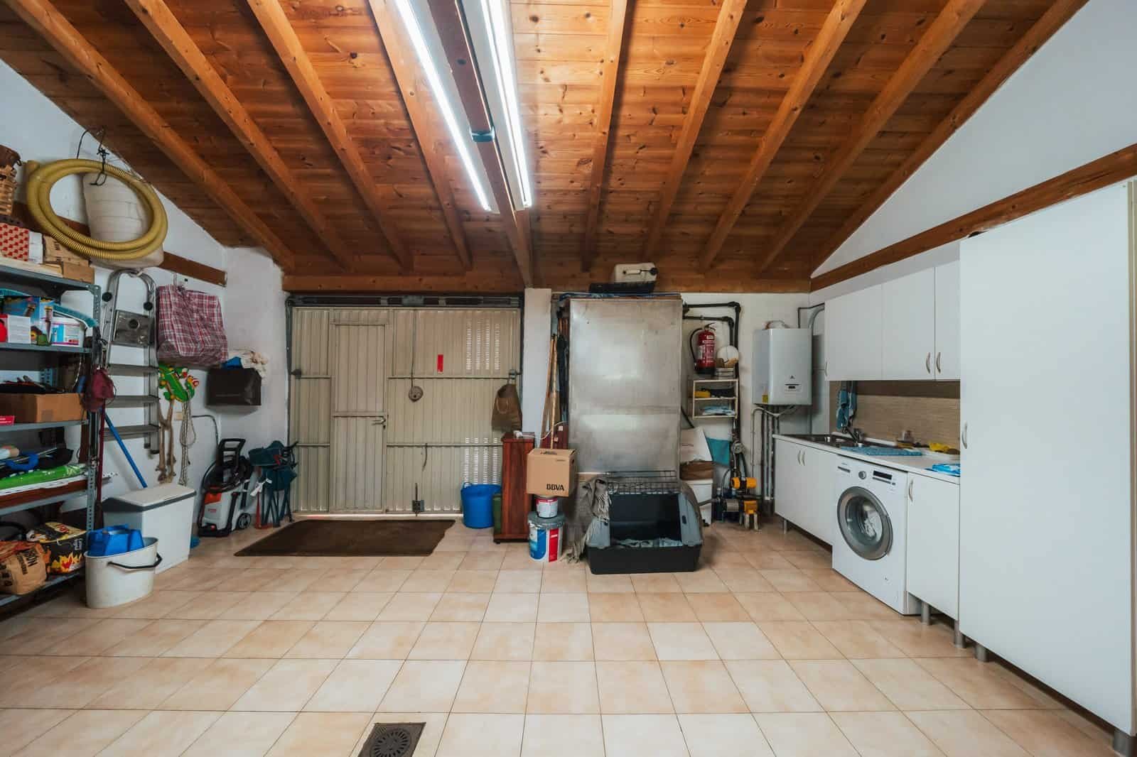 En la planta baja se ubica un amplio garaje para dos vehículos, así como una zona de bricolaje y almacenaje.
