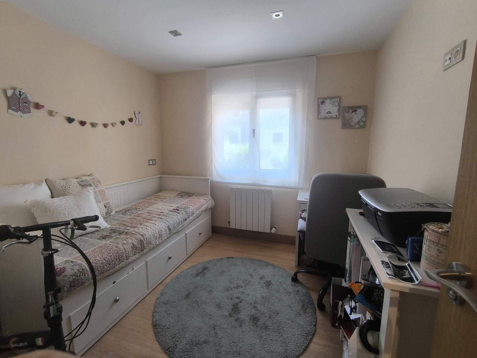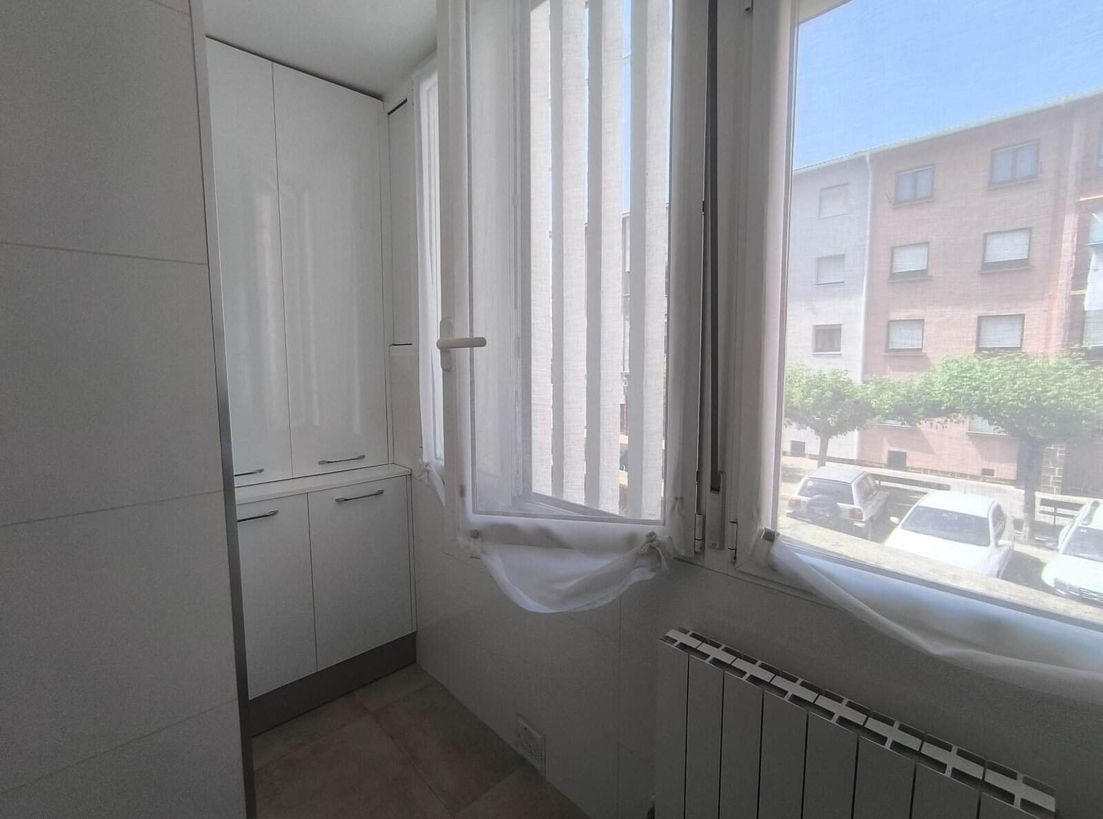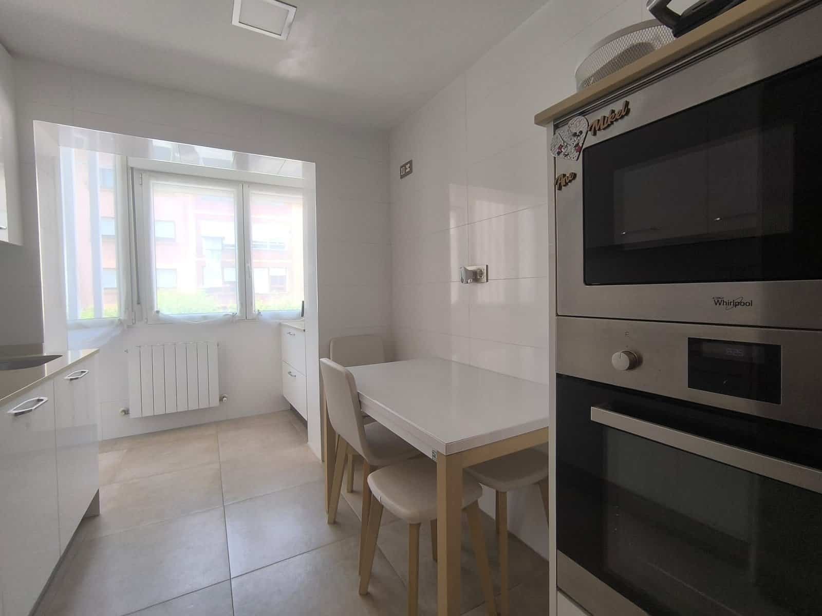 La vivienda de ochenta metros cuadrados consta de 3 habitaciones, salón, cocina equipada, y baño completo con ducha y ventana. Dispone de suelos de madera y de gres, ventanas de PVC oscilobatientes con doble cristal climalit, puertas de madera, calefacción de gas natural. Todo en perfecto estado de conservación.