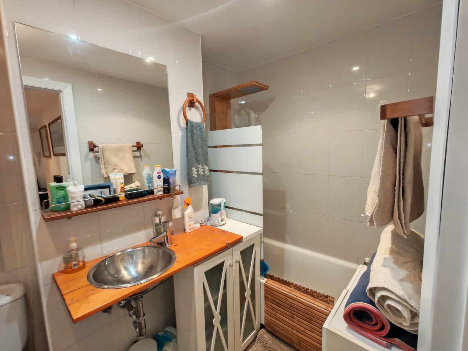 El baño cuenta con una bañera y columna de hidromasaje, perfecta para relajarse después de un largo día. Además, podrás disfrutar de un pequeño balcón que te permitirá respirar aire fresco y contemplar las vistas de las zonas verdes que rodean la propiedad. Los suelos de parqué y las ventanas de PVC aportan un toque de elegancia y confort.